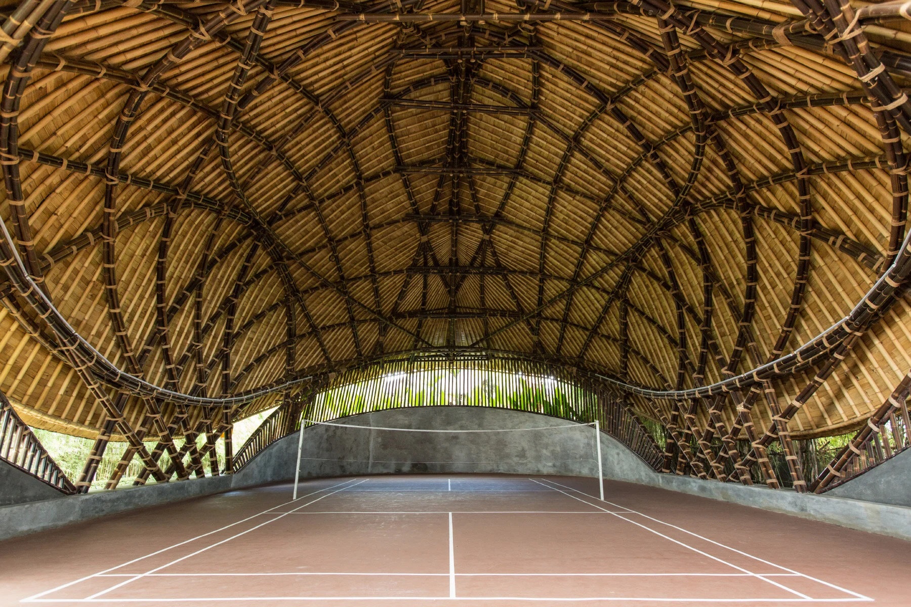 Inspired by the shape of a tortoise shell, the large bamboo structure was designed and built in a collaboration between Ibuku and Studio Jencquel. The court is privately owned by Maximilian Jencquel and was completed in 2016.
