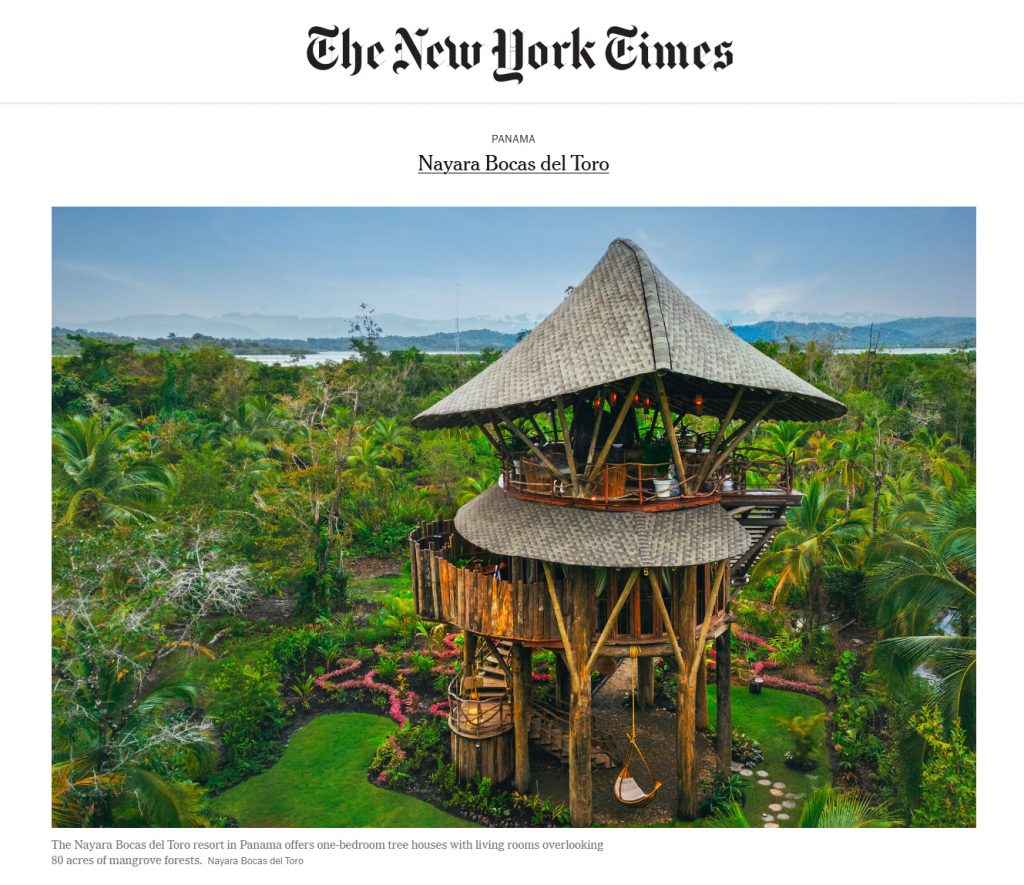 On Frangipani, a private island in Panama, sits the Nayara Bocas del Toro resort, with four solar-powered tree house accommodations designed by Ibuku, a Bali-based design studio led by Elora Hardy, the Canadian designer. The tree houses are made from locally grown bamboo and several varieties of reclaimed hardwoods.